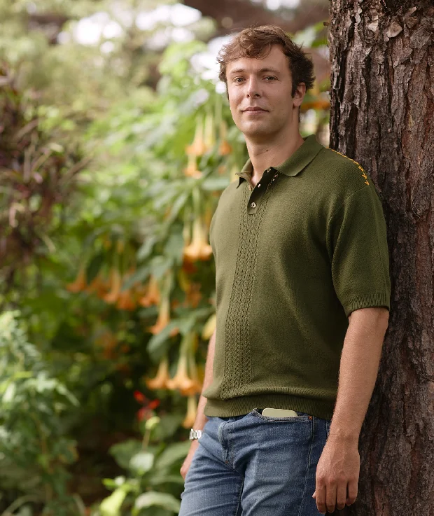 Polo homme en 100 % coton supérieur, avec col classique, maille ajourée et broderie faite main. Un polo chic et respirant, idéal pour un look casual et raffiné.